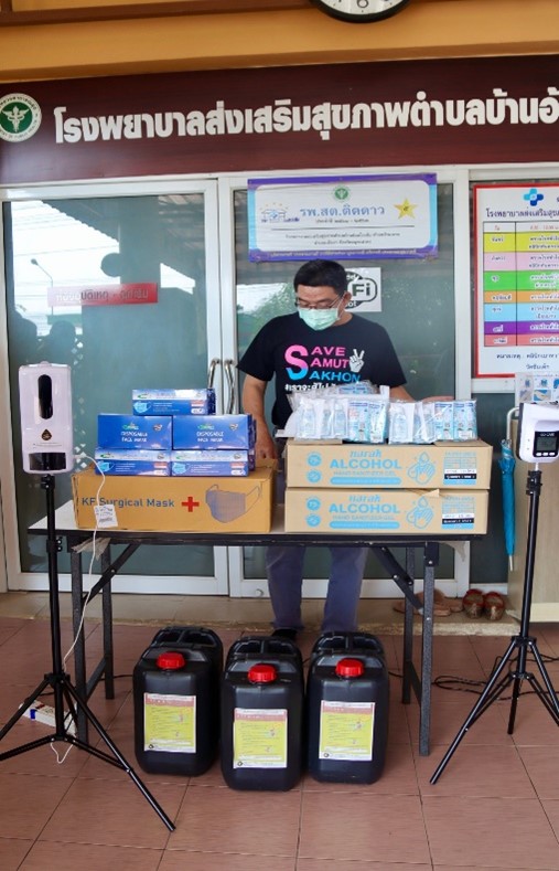 ภาคีเครือข่ายผู้ประกอบการ จัดโครงการ มอบวัสดุอุปกรณ์ทางการแพทย์ให้กับโรงพยาบาลส่งเสริมสุขภาพตำบลบ้านอ้อมโรงหีบ ,โรงพยาบาลส่งเสริมสุขภาพตำบลบ้านบางกระเจ้า, โรงพยาบาลส่งเสริมสุขภาพตำบลท่าทราย และผู้นำชุมชนโดยรอบๆนิคมอุตสาหกรรมสมุทรสาคร จำนวน 8 ชุมชน ณ โรงพยาบาลส่งเสริมสุขภาพตำบลฯ ทั้ง 3 แห่ง